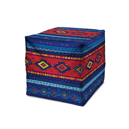Dekorjinal Küp Formlu Etnik Desenli Deri Puf - 40x40 cm - (CHNE099)