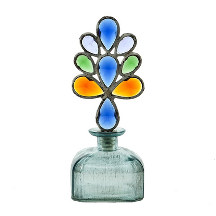 Evlina Home Renkli Kristal Tıpalı Mavi Dekoratif Cam Şişe Mavi