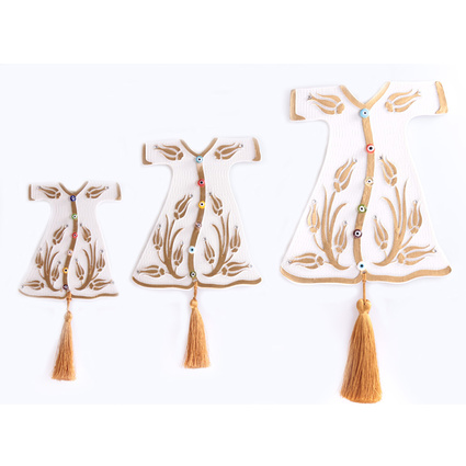 Miss Gaya Krem-Altın Üçlü Kaftan Nazarlık Set