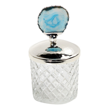 Altıncı Cadde Mavi Taşlı Kesme Mumluk Küçük Boy 9 Cm