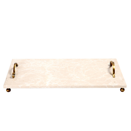 Altıncı Cadde Eskitme Kulplu Bej Mermer Tepsi 25x45 Cm