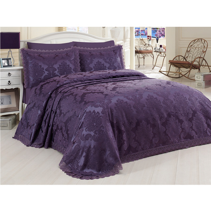 Dantela Vita Jakarlı Çift Kişilik Yatak Örtüsü Ahsen - Mürdüm