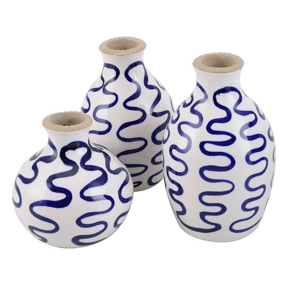 Evlina Home Mavi El Boyaması Seramik Vazolar Mavi