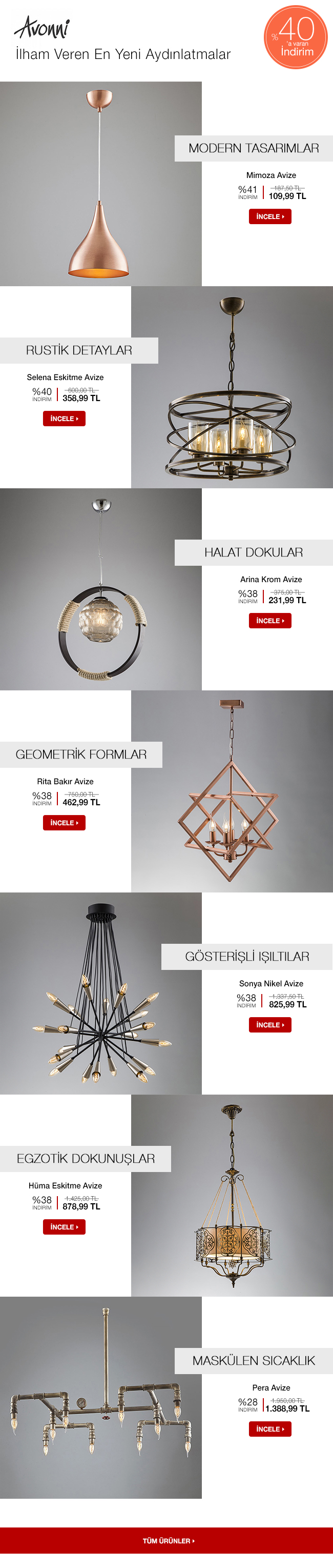 İlham Veren Aydınlatmalarda %40'a Varan İndirim!