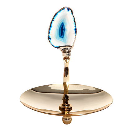 Altıncı Cadde Mavi Doğal Taşlı Altın Rengi Yuvarlak Sunum Tabağı M
