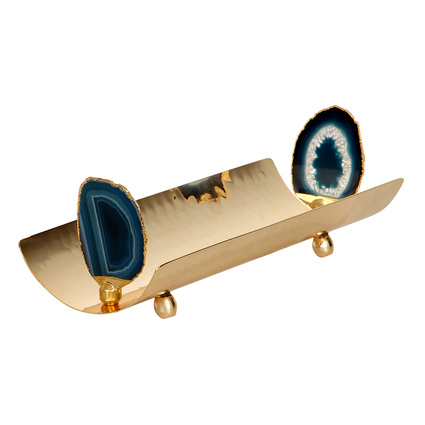 Altıncı Cadde Mavi Doğal Taşlı Altın Rengi Kurabiyelik 14x30 Cm