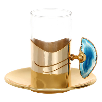 Altıncı Cadde Mavi Doğal Taşlı Altın Rengi Fincan