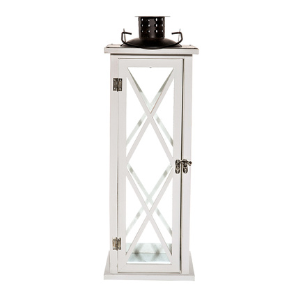 Altıncı Cadde Beyaz Ahşap Fener S 36 Cm