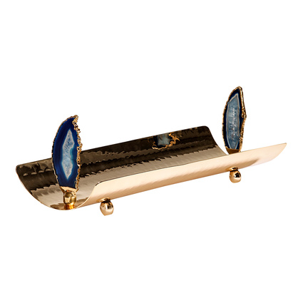 Altıncı Cadde Mavi Doğal Taşlı Altın Rengi Tepsi 16x35 Cm