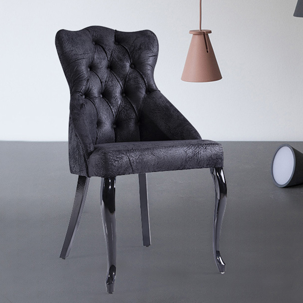 Hamdeko Eames Kapitoneli Deri Metal Ayaklı Sandalye Siyah
