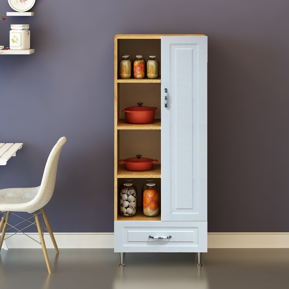 Fly Tek Kapak Tek Çekmeceli Membran Kapaklı Safir Meşe Gövdeli Açık Raflı Boy Dolap