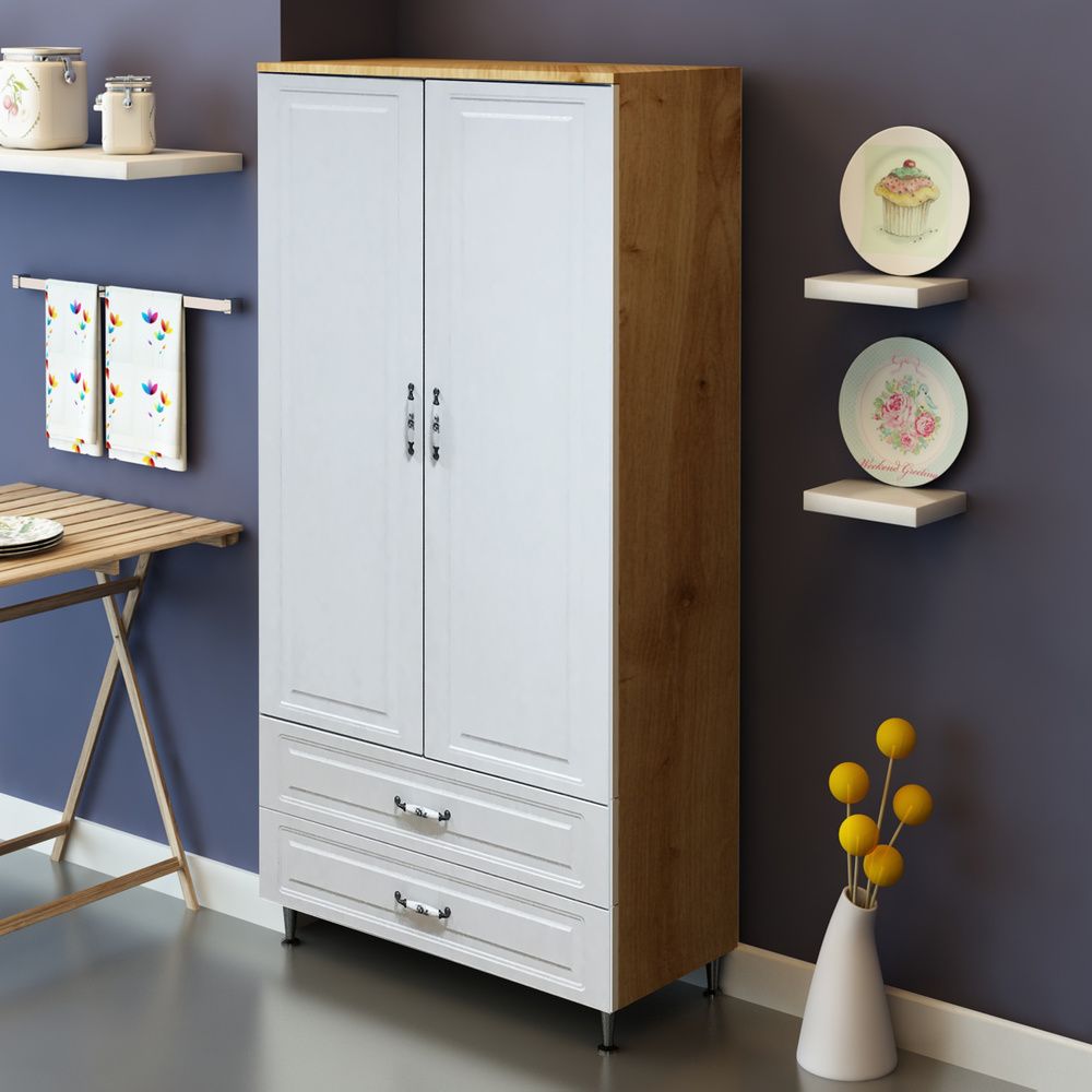 Fly İki Kapaklı Membran Kapaklı Safir Meşe Gövdeli Yüksek Dolap