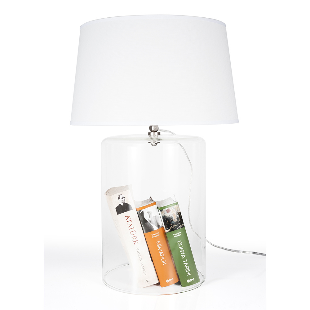 Evlina Home Şeffaf Cam Gövdeli Abajur Beyaz