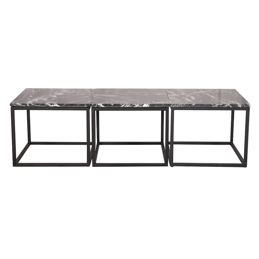 3A Mobilya Siyah Mermer Kare Sehpa 3lü