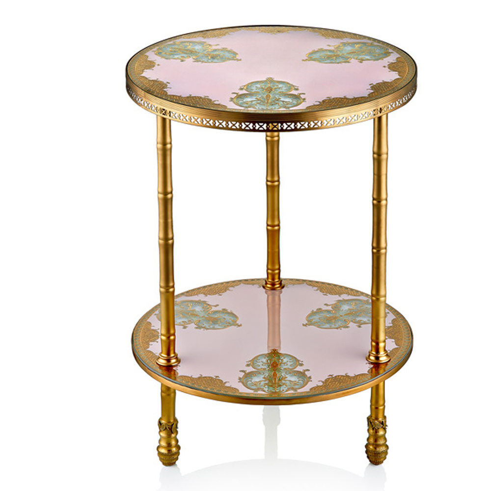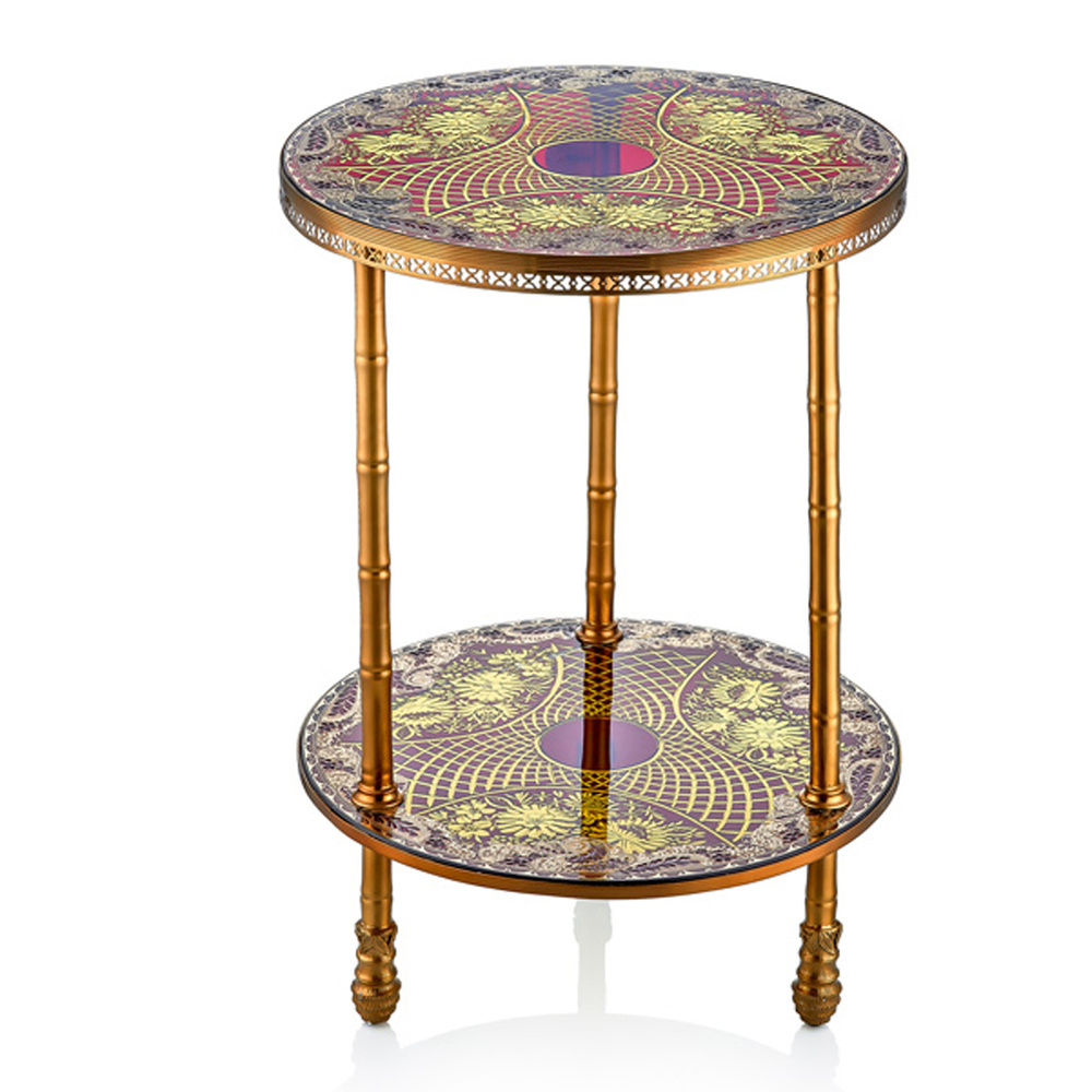 Cemile Somon Üzerine Altın Desenli 2 Katlı Sehpa