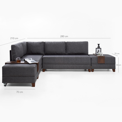 Evdebiz Fly Yataklı Sol L Koltuk&2 Adet Sehpa Hediyeli