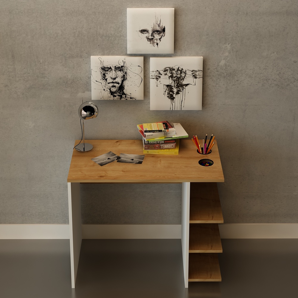 Fly Metal Ayaklı Meşe Çalışma Masası