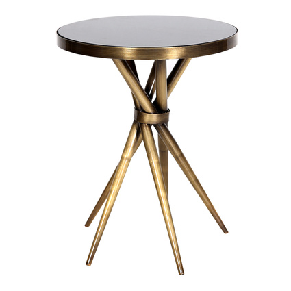Altıncı Cadde Siyah Camlı Pirinç Büküm Yan Sehpa 55x60 Cm