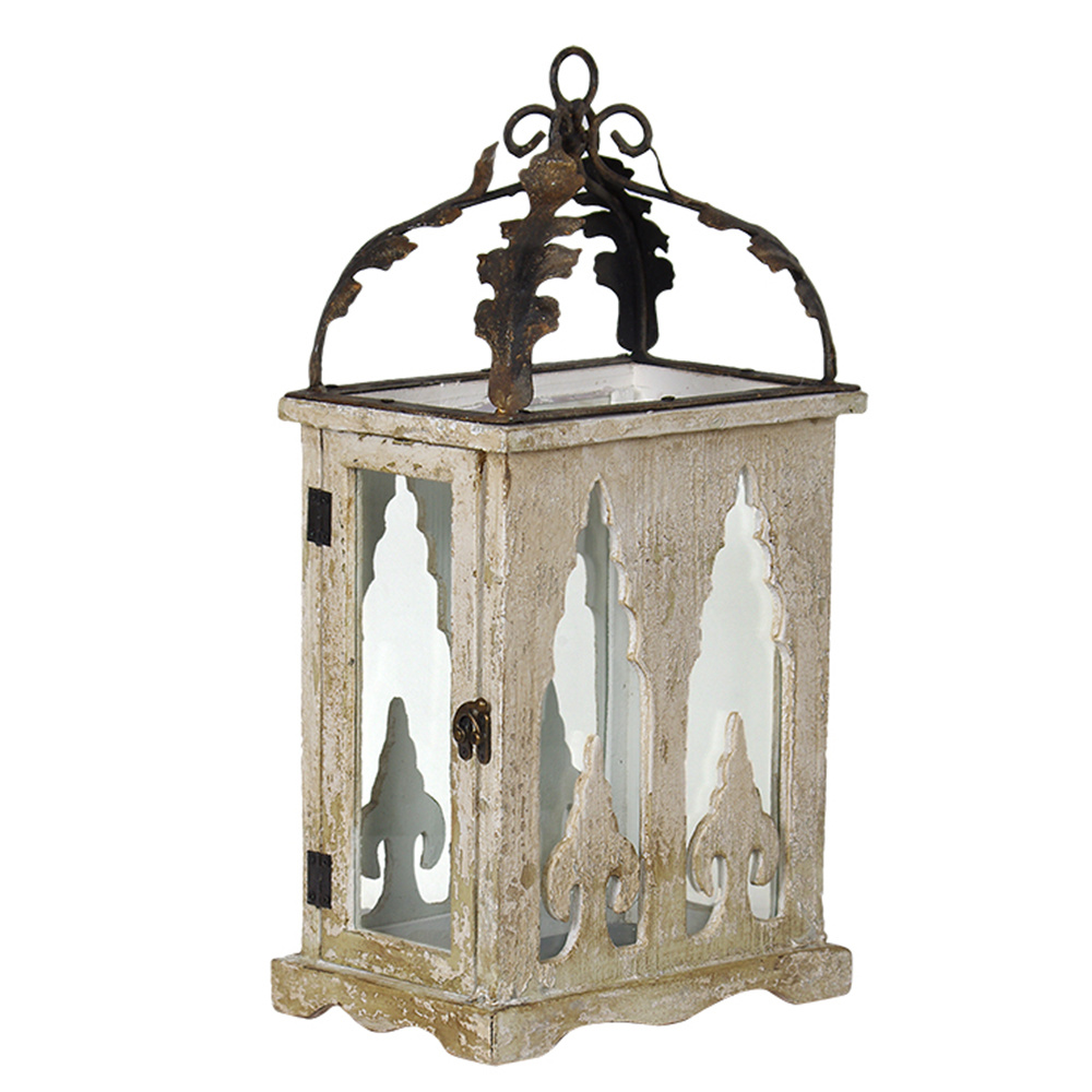 Altıncı Cadde Beyaz Ahşap Fener 55Cm