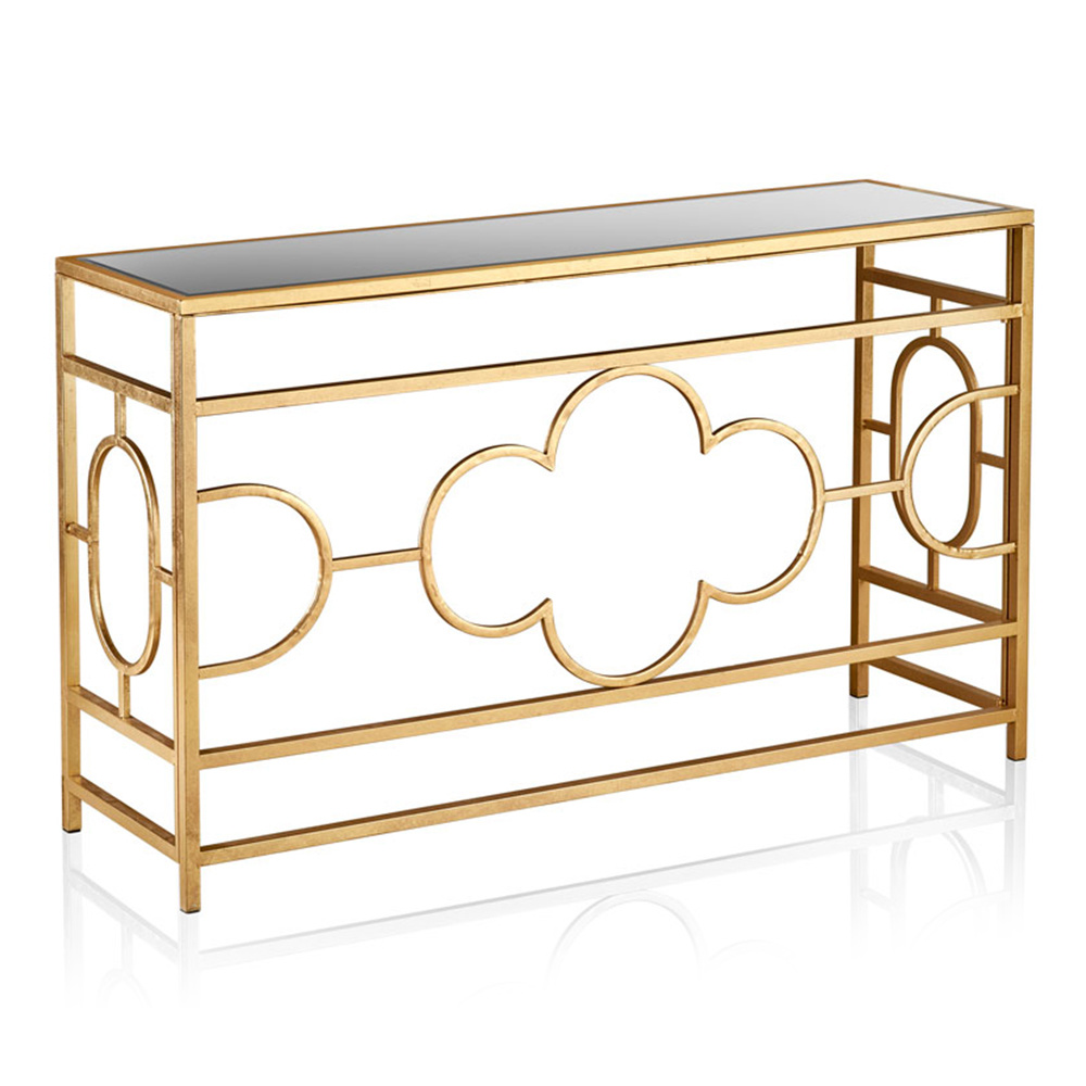 Altıncı Cadde Siyah Camlı Eskitme Pirinç Dresuar 100x35 cm