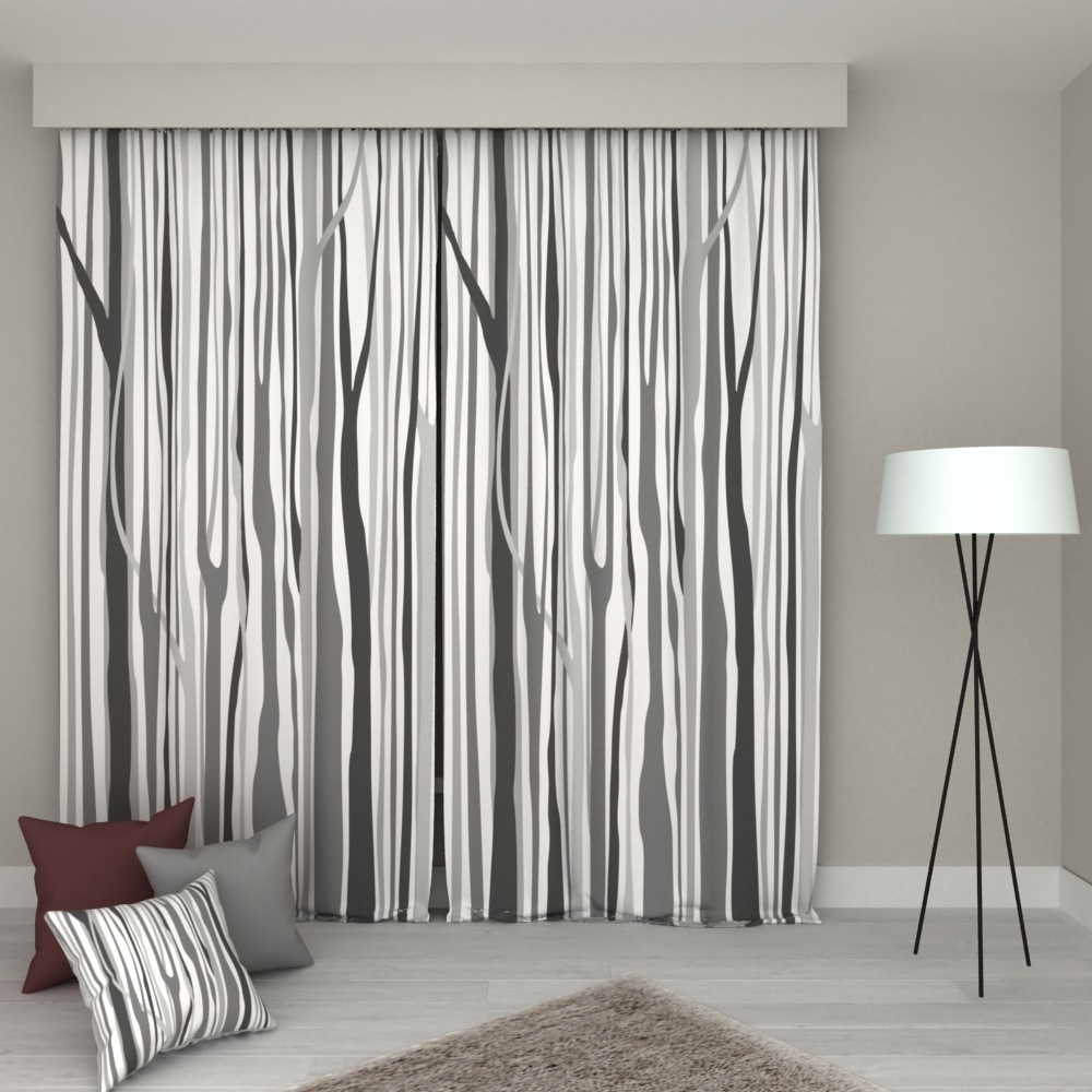 ErenEv 5190 Tek Gri Dallar Desenli Tek Kanat Fon Perde