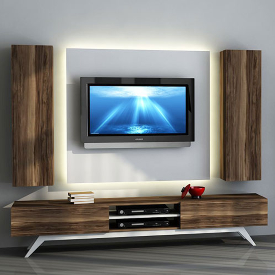 Sanal Mobilya Tv Ünitesi Leon Ceviz Beyaz