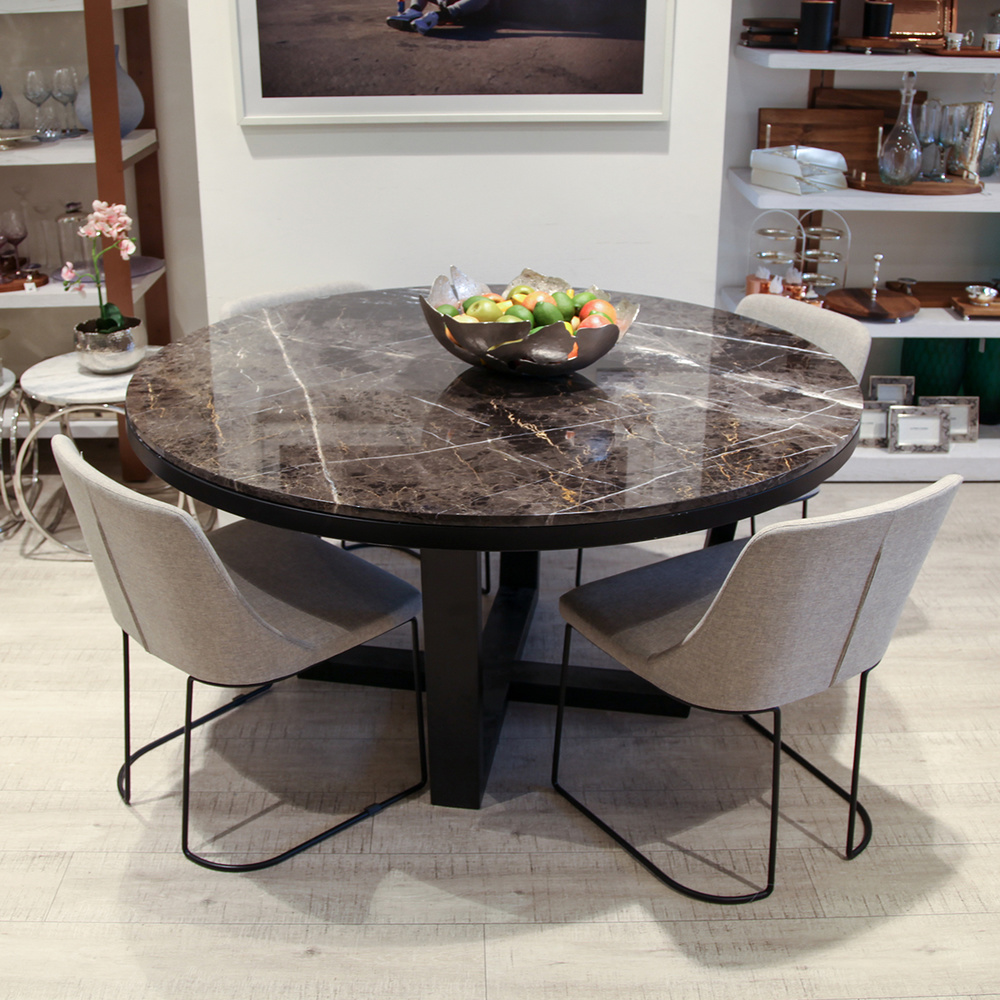 Altıncı Cadde Kahverengi Mermerli Yuvarlak Yemek Masası 150 Cm